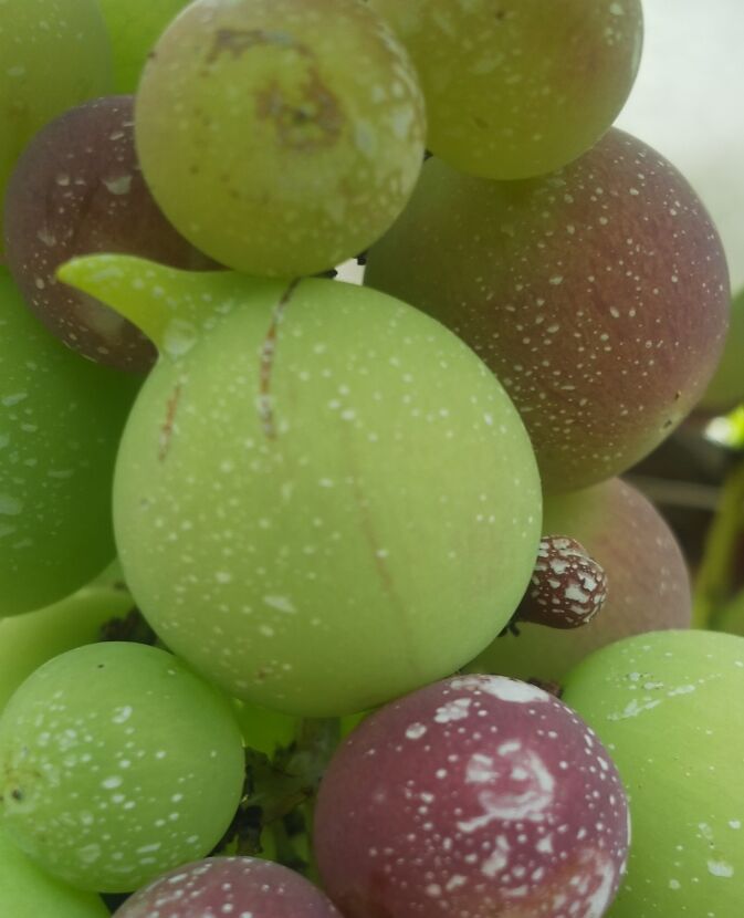 今日も、畑でひたすらぶどうに笠掛をしています。そんな中たまに変わったぶどうを発見します。双子のぶどうと角があるぶどうです。滅多に見る事が無いですが、品種によってたまに発見する事があります。どうしてこんなのが出来るのでしょうか?😱考えてみて下さいね⁉️
